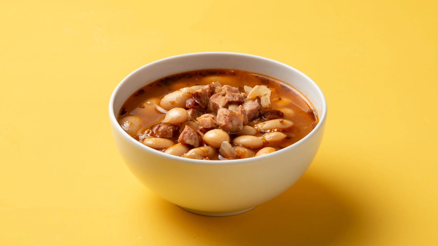 SKŁAD: woda, fasola biała, kiełbasa śląska, cebula biała, koncentrat pomidorowy